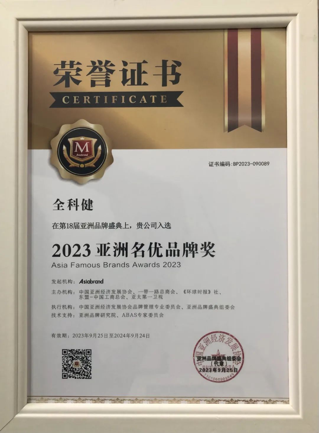 出席本届亚洲品牌盛典,全科健品牌荣获