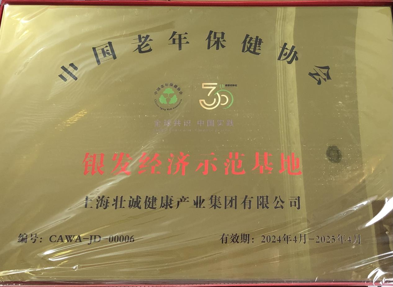 作为健康产业的领军之师,上海壮诚健康产业集团非常荣幸地成为中国老年保健协会团体会员单位,并成为银发经济示范基地。