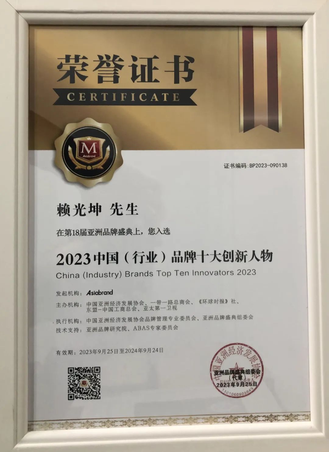 ,董事长赖光坤则荣获